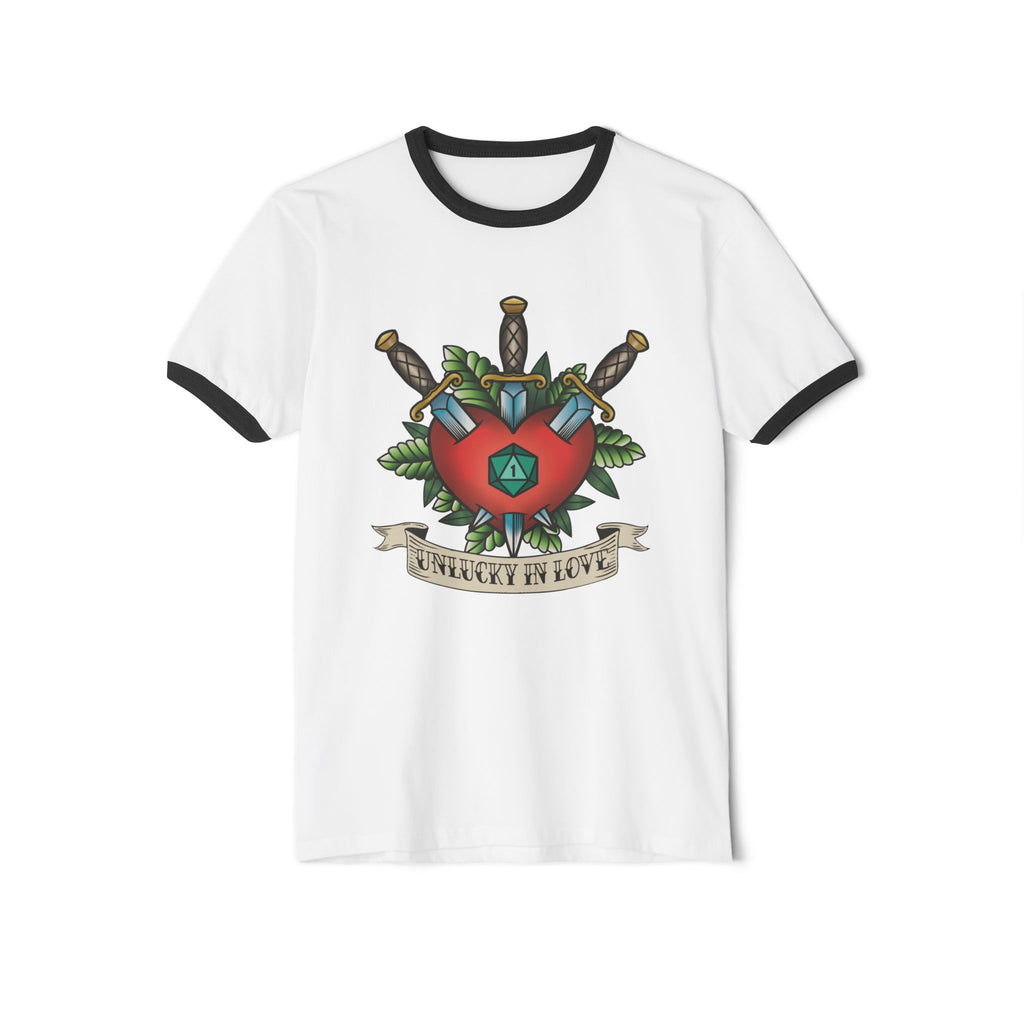 Sometimes we roll a "natural 1" in love. Repeatedly. Embrace your luck with this classic cool tattoo inspired ringer tee, and maybe the dice will take pity on you.